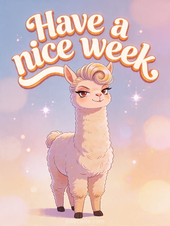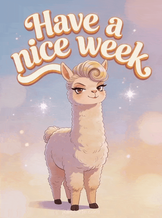 Share this funny have a nice week card with a smug alpaca, fluffy fur, and a fabulous sassy attitude. You can also discover good week gifs humor, have a nice week message and good morning good week animated gif.