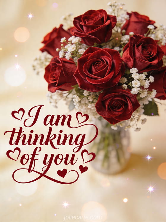 Share your love with this romantic thinking of you card and its bouquet of deep red roses. Discover also a good morning my love i am thinking of you, a i dream of you i am thinking of you or i am thinking of you i love you.