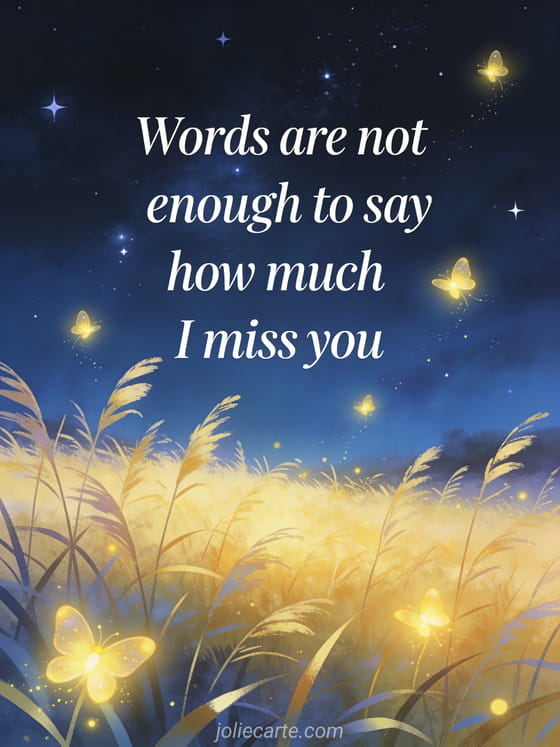 Send this magical and poetic card to let someone know how much you miss them. Discover also an I miss you I love you card or an I miss you love poem card.