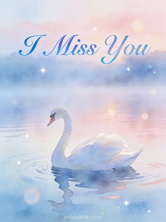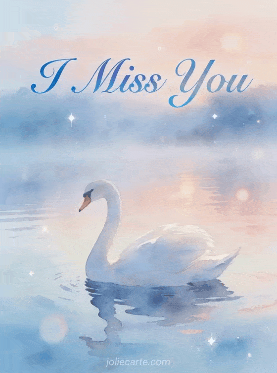 Share this poetic card with a swan to say you miss someone and think of them. Discover also a I miss you I love you card or a miss you my heart card.