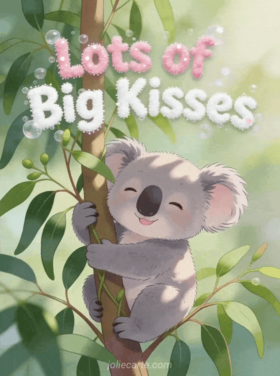 Send lots of big kisses to someone dear with this adorable and tender greeting. Discover also a sweet kisses card, a cute kisses image or a kisses from afar card.
