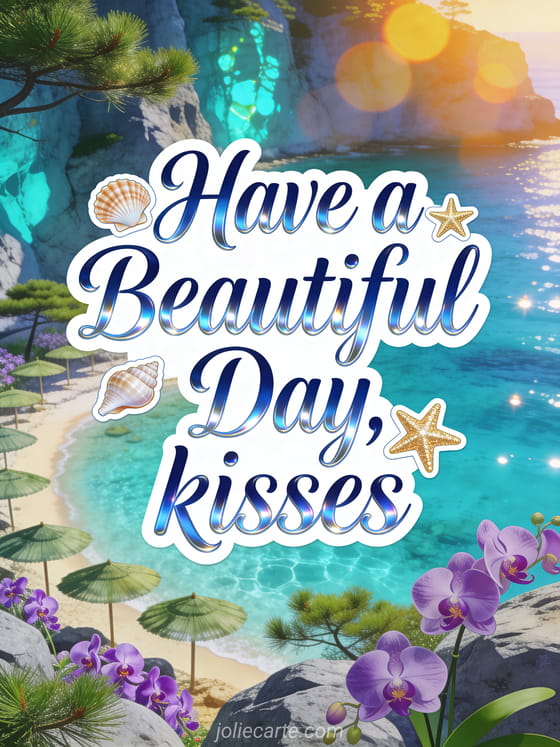Wish someone a beautiful day with kisses and this charming Mediterranean-inspired greeting card. You might also enjoy a big kisses have a nice day or a good morning my love have a good day for a romantic touch.