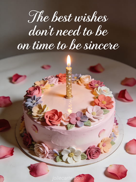 Send a heartfelt late birthday message that shows how much you care, no matter the timing. Discover also a late birthday image card, a wishing happy birthday late card or a late birthday cat card.