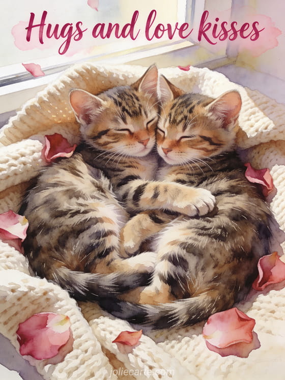 Express your love with this tender hugs and kisses card. Discover also a kisses text message card or a gif love kisses card.