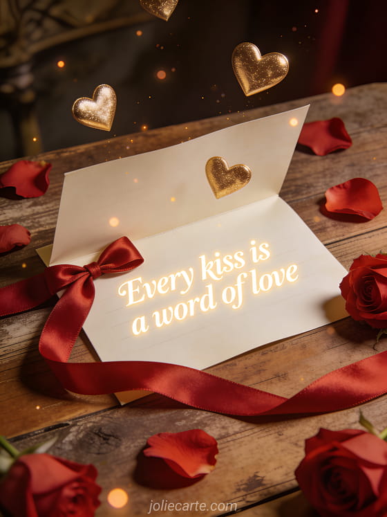 Share this beautiful romantic card where every kiss is a love word. Discover also a love kisses image card or a love kisses for you card.