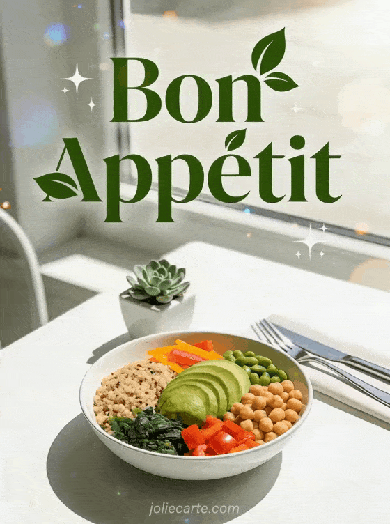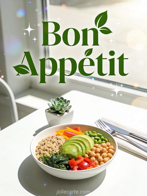 Share a delightful bon appétit greeting with this fresh healthy buddha bowl lunch card. Discover also a bon appétit message card or a bon appétit card.