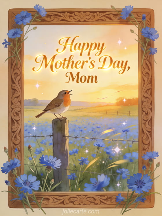 Celebrate your mom with this tender Mother's Day card inspired by nature and warm sunset tones. Discover also mom mother's day quote, words for mother's day, and mother's day text.