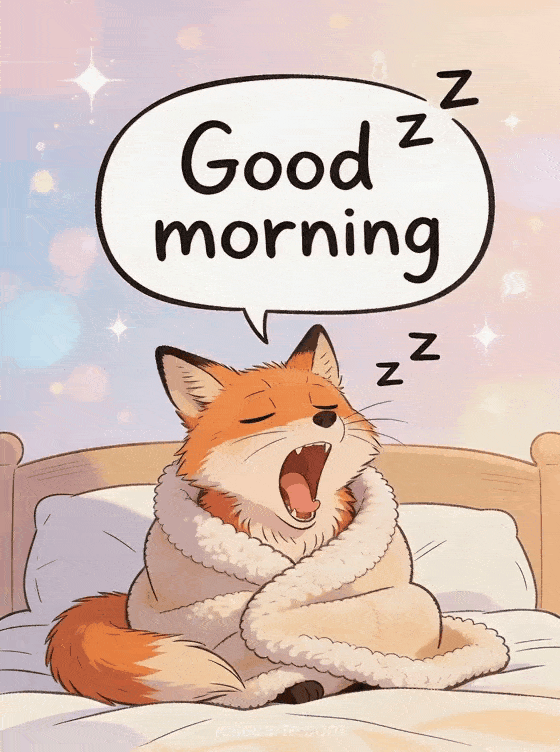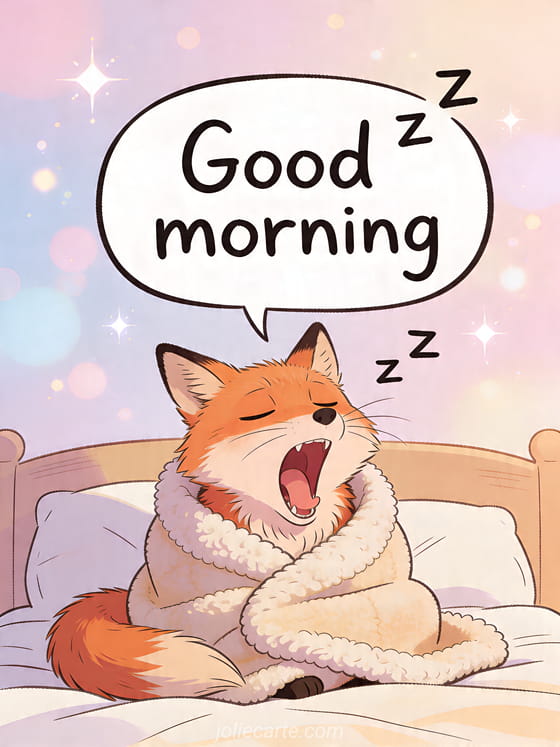 Send a funny Good morning card with a sleepy fox under a blanket for a relatable monday start. Discover also a happy monday, good morning happy monday good week kisses and good morning monday good start of the week.