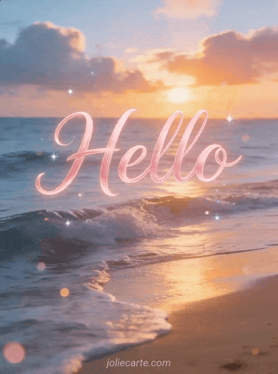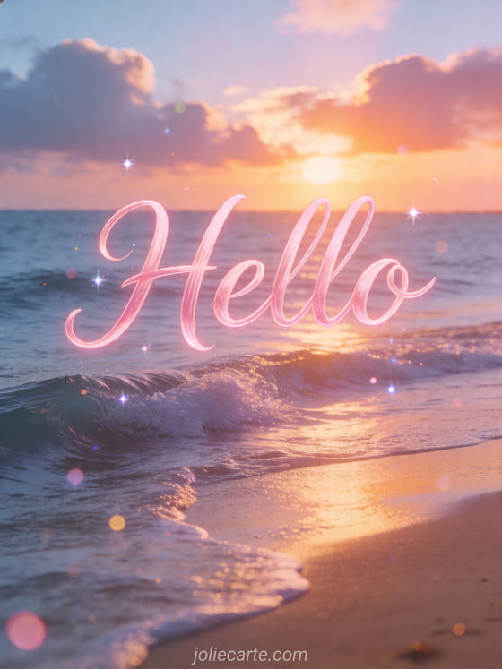 Share this peaceful hello card with a stunning ocean sunrise, gentle waves, and the first golden light of dawn. You can also discover say hello, hello and friendly good morning sms.