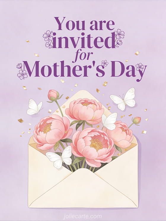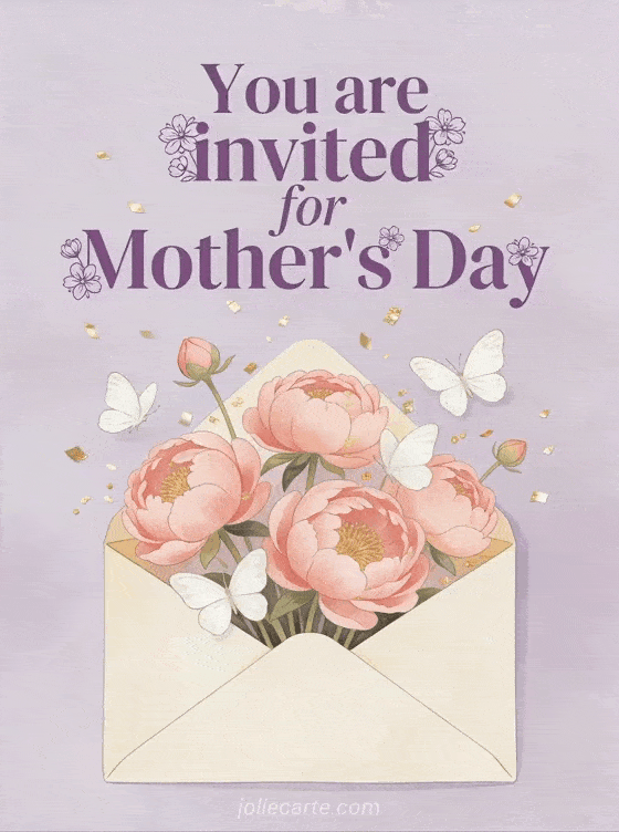 Share this festive mother's day invitation card to announce a joyful celebration. You can also explore happy mother's day card, sweet words mother's day, and mother's day invitation card.