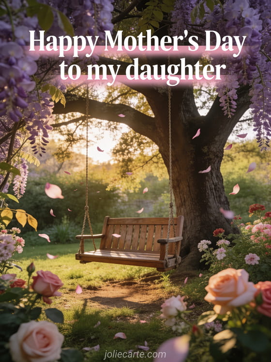 Share this free mother's day wish for my daughter card to celebrate her with tenderness. Discover also a letter for mother's day, mother's day card text, and happy mother's day image.
