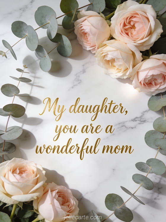 Share this elegant mother's day card to tell your daughter she is a wonderful mom. You can also discover mother's day sweet words box, mother's day sweet words jam, and happy sunday of mother's day.