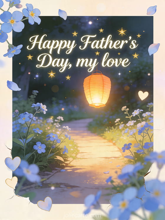 Send a glowing Father's Day greeting to your love with a dreamy sky lantern, forget-me-not blossoms and tender heart details. Discover also a free father's day greeting card, father's day flowers or a love poem for Father's Day.