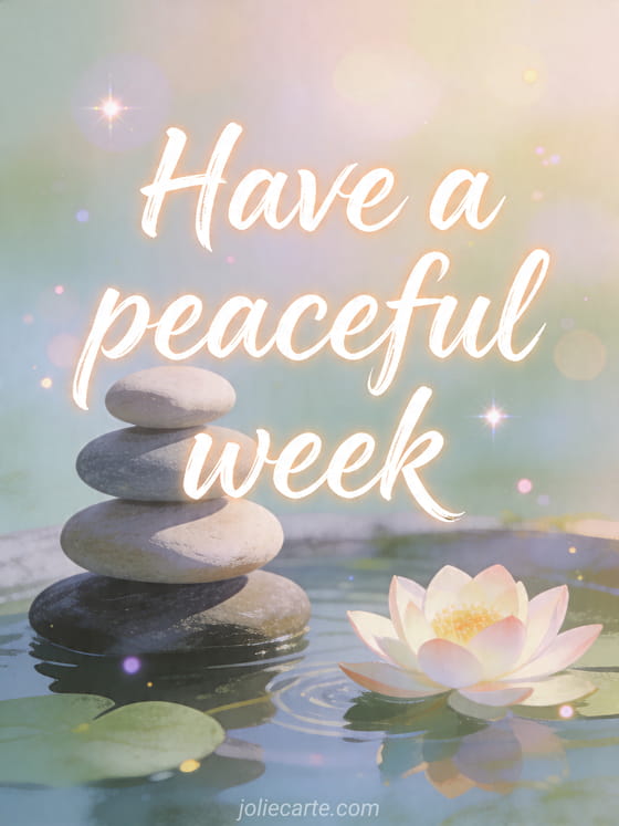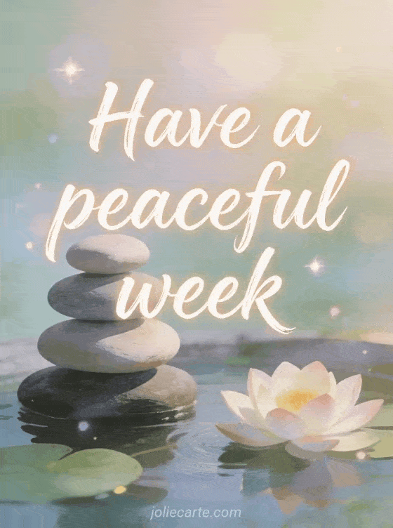 Send this peaceful week card to offer serenity and mindfulness from the start of the week. Discover also good day good week gif, have a nice day and a nice week or have a nice week image.