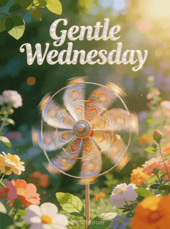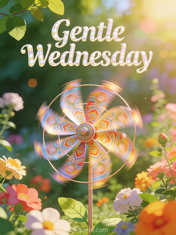 Gentle Wednesday a playful midweek greeting in a bright garden