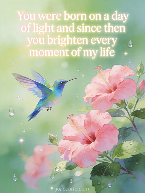 You were born on a day of light and since then you brighten every moment of my life A tender birthday message full of love, light, and gratitude.