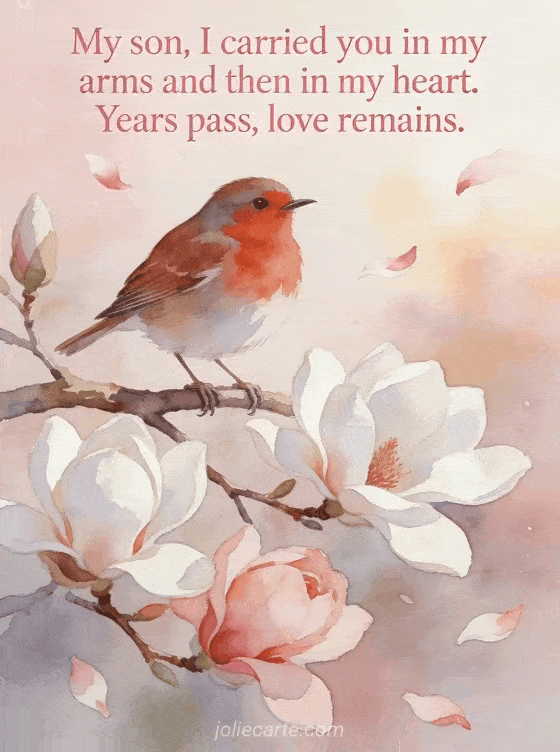 poem from a mother to her son for his birthday My son, I carried you in my arms and then in my heart. Years pass, love remains.