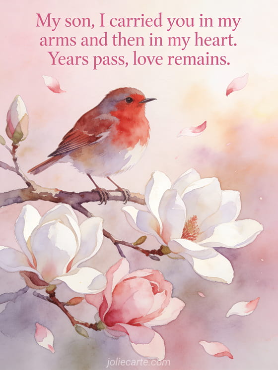 Share this tender birthday poem from a mother to her son and celebrate your lifelong bond. Discover also a my son card birthday card adult son, a birthday poem for my son or a birthday text for adult son.
