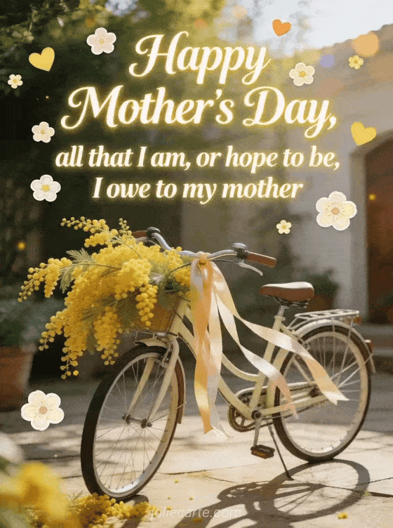 Happy Mother's Day, all that I am, or hope to be, I owe to my mother a joyful Mother's Day message of gratitude