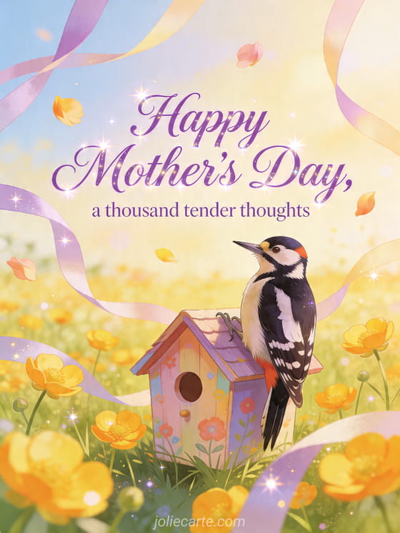 Share a gentle poetry about Mother's Day card filled with spring light, flowers, and affection. Discover also a mother's day wish to my daughter, a mother's day sweet words box, or a mother's day sweet words jam.