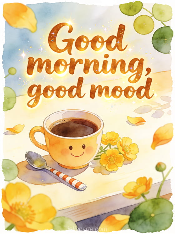 Start the day with a cheerful watercolor coffee cup, golden buttercups and a striped spoon on a sunny tabletop. You can also send good morning good morning coffee, a beautiful good morning coffee image or good morning good coffee.