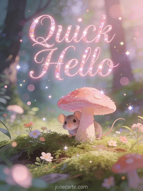 Quick hello a cute quick hello with a tiny mouse in an enchanted forest