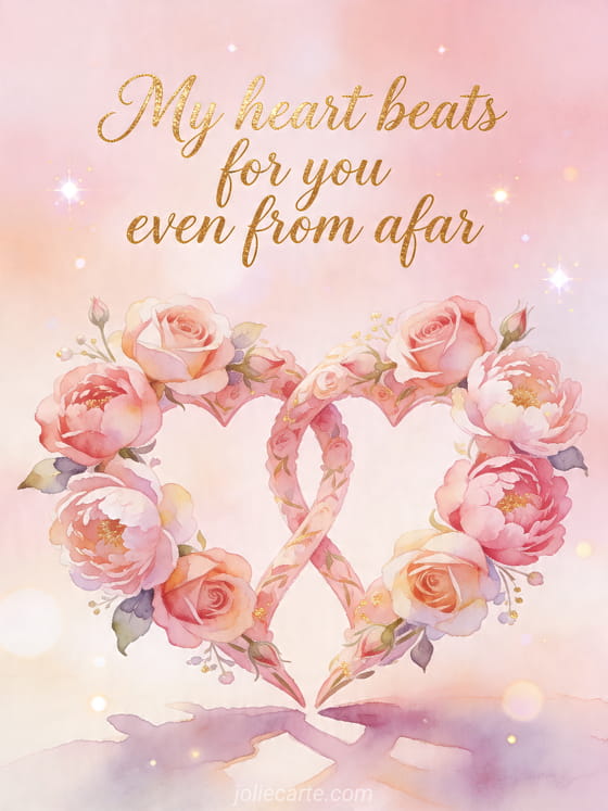 Express your feelings with this romantic card and its watercolor flower hearts. Discover also a i miss you my love message, a funny i miss you gif or i miss you so bad.