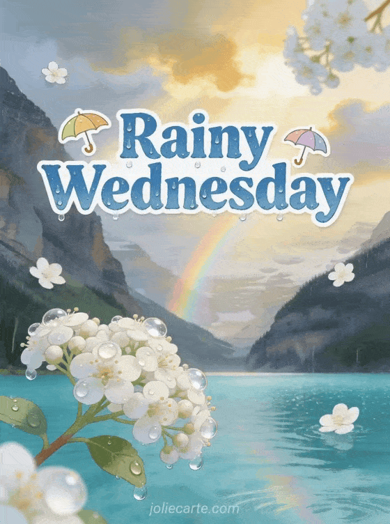 Share this rainy wednesday card to send calm and comfort on a wet day. Explore also good morning happy wednesday photo, wednesday wednesday image good morning and nice day, and happy wednesday and nice day gif.