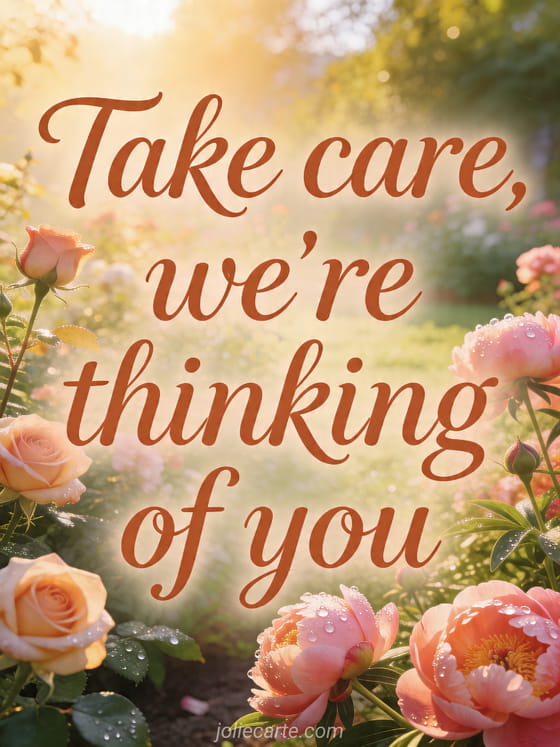 take care, we're thinking of you a tender message to send comfort and support