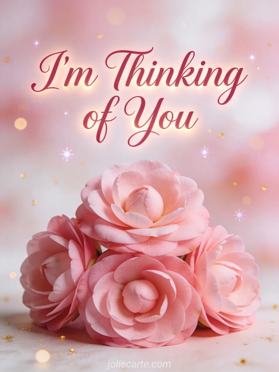 Share this tender card with soft pink camellia flowers for someone you're thinking of. Discover also a falling asleep thinking of you message card or a thinking of you so much my love card.