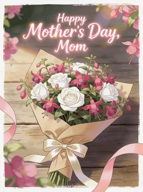 Share this romantic Mother's Day flower card to brighten your mom's day with love. Discover also animated mother's day gif, mother's day flower bouquet image, and letter to my daughter for mother's day.