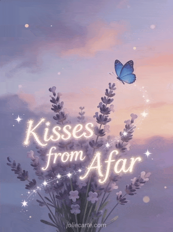Send sweet kisses from afar to someone special with a poetic and dreamy greeting. Discover also a sweet kisses card or a cute kisses image.
