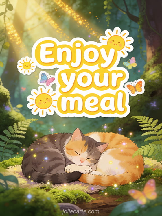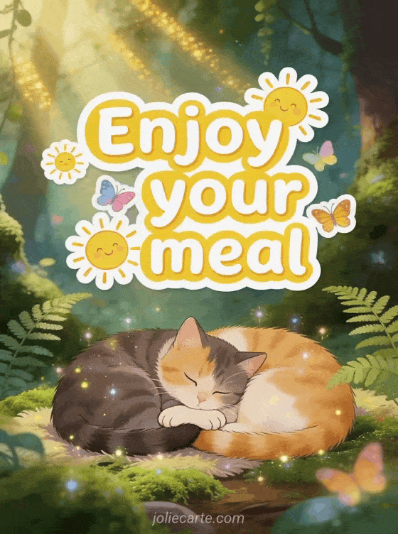 Send this smiley enjoy your meal image to wish someone a delightful meal. Discover also a romantic enjoy your meal image or an enjoy your meal animated gif card.