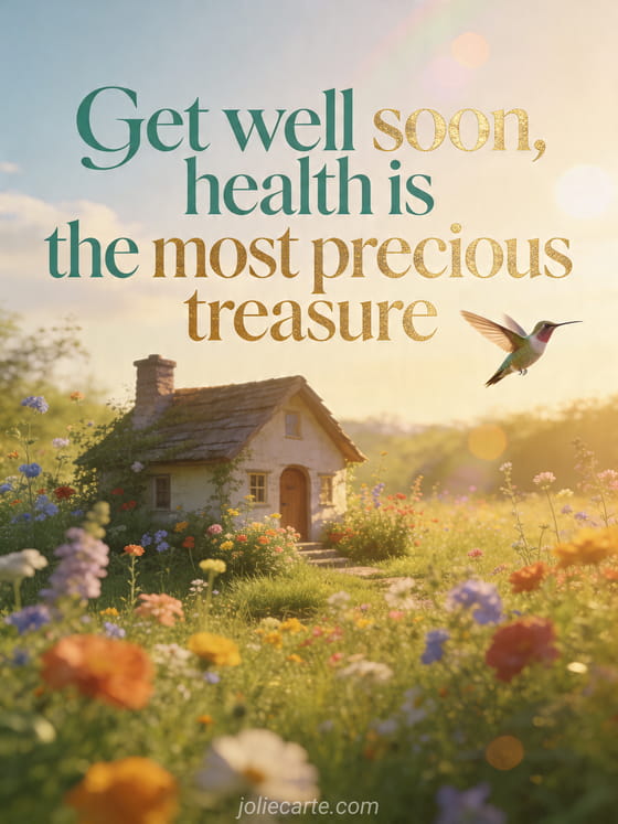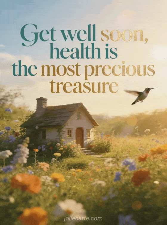 Get well soon, health is the most precious treasure a peaceful message of comfort and hope