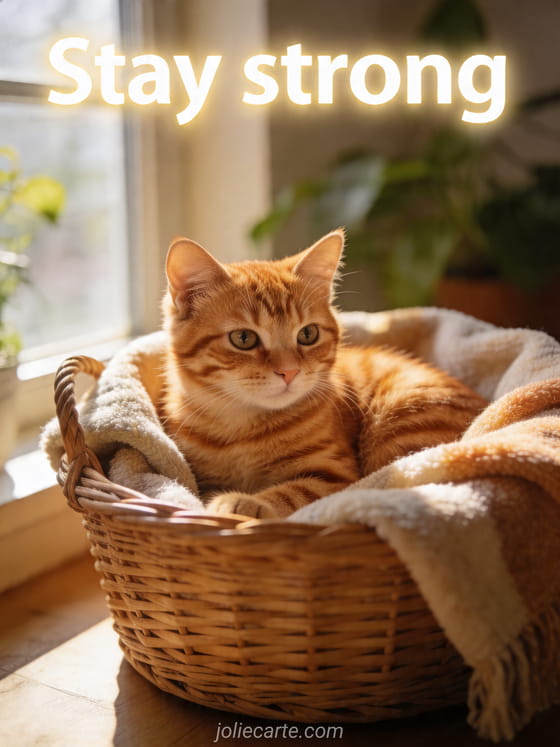 Send a comforting stay strong message with this free card to share warmth, tenderness, and encouragement. You can also discover stay strong in these difficult times, stay strong for tomorrow, or stay strong heart.
