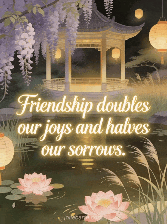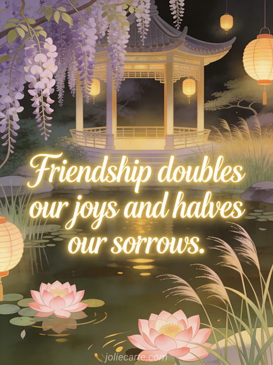 Celebrate the beauty of friendship that doubles our joys and halves our sorrows with this touching card. Discover also a beautiful friendship message card.