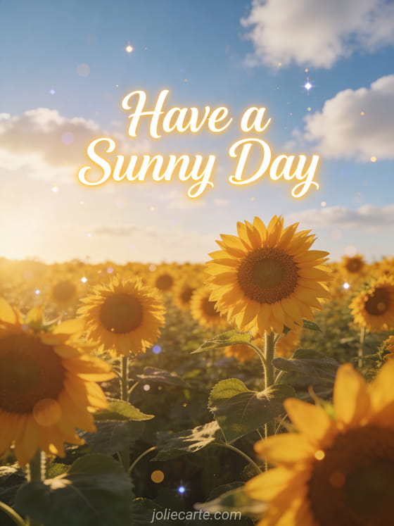 Share a sunny day wish with this vibrant sunflower field card. Discover also a smile have a nice day coffee or have a nice day dogs gifs.