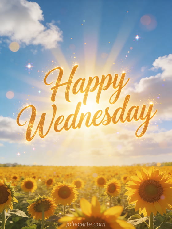 Brighten someone's Wednesday with this radiant sunflower field card. Discover also a happy wednesday photos card or a happy wednesday january card.