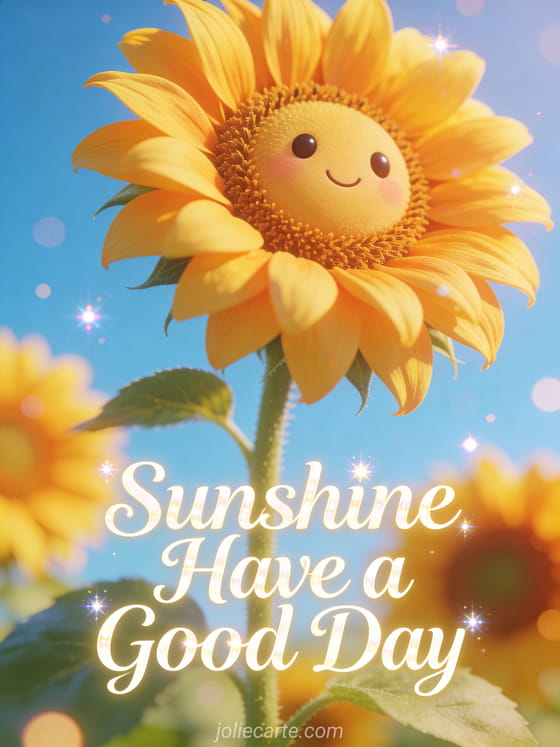 Brighten the day of your loved ones with this radiant card featuring a happy sunflower with a cute smiling center under a bright blue sky, radiating warmth and happiness. Discover also a have a good rainy day card or a have a good day card with kisses.
