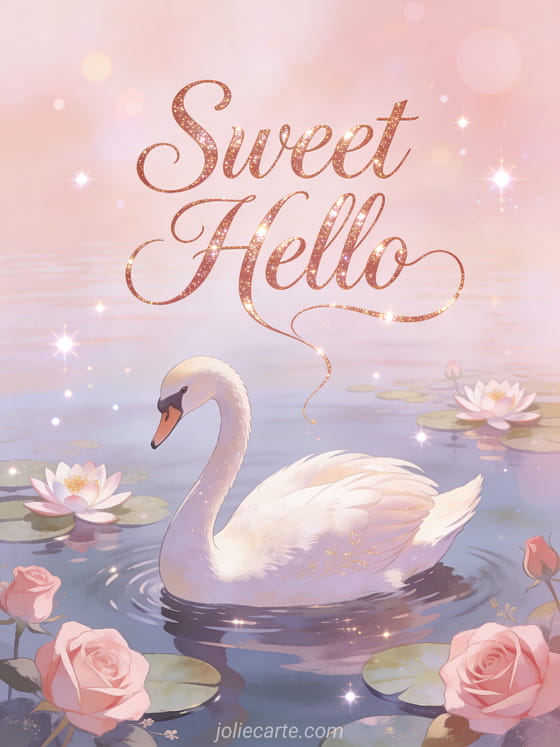 Share a graceful hello with this beautiful swan pond greeting card. Discover also a hello photos card or a hi there yellow card or a thinking of you card.