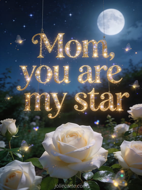 Share a tender mother's day wish with a poetic night sky and glowing floral atmosphere. Discover also mother's day long poem, mother's day card message and free mother's day cards.