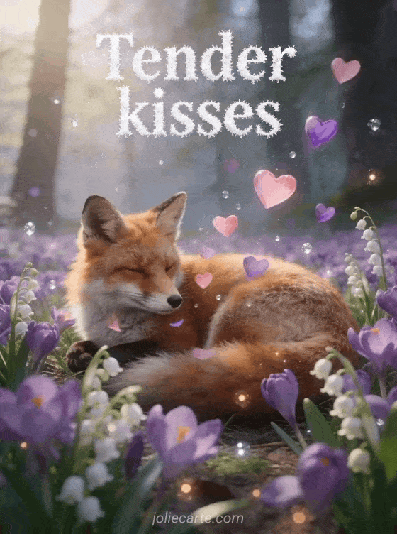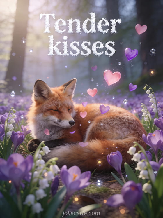 Share a beautiful tender kisses greeting with this free card filled with softness and spring charm. Discover also a love text big kisses image, an animated love kisses image or hugs and kisses couple.