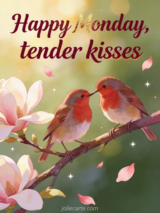Start the week with tenderness and send this beautiful happy Monday card full of kisses. Discover also a coffee excellent happy Monday and great week card or a monday card kisses.