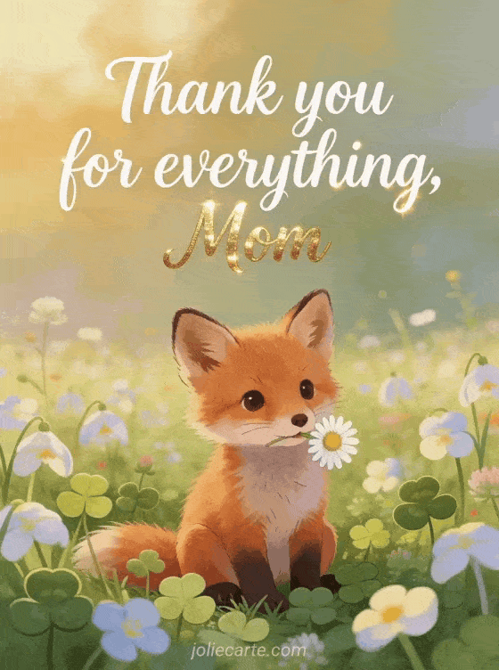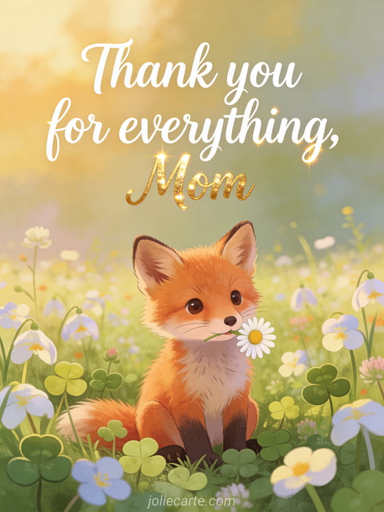Thank you mother's day image a touching card with a little fox to thank Mom for everything