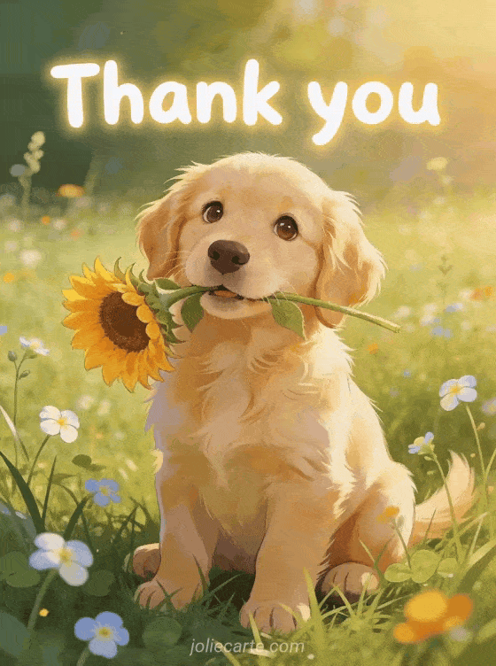 Share this cute thank you puppy card with someone special. Discover also a thank you for this moment card or a thank you with a heart card or a saying thank you message card.