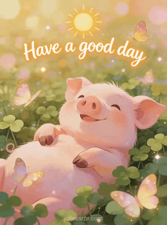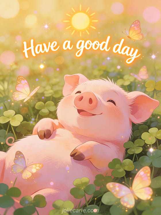 Share thursday have a good day with a content pig resting happily in a clover field while butterflies drift around. Send more bright wishes with beautiful image to say happy Thursday, happy thursday quote images or good day on thursday.