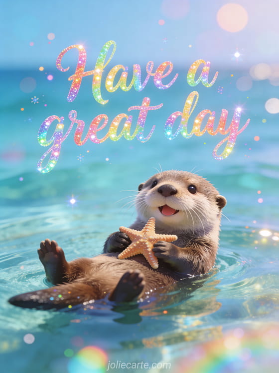 Wish someone a wonderful Thursday with this cheerful otter greeting. Discover also a have a nice day happy Thursday card or a happy Thursday sunshine card.