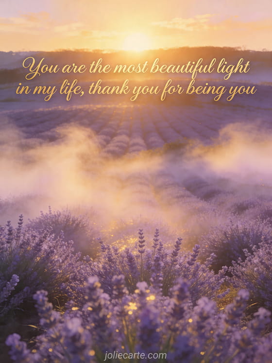 You are the most beautiful light in my life, thank you for being you a tender birthday message for mom with a glowing lavender sunrise