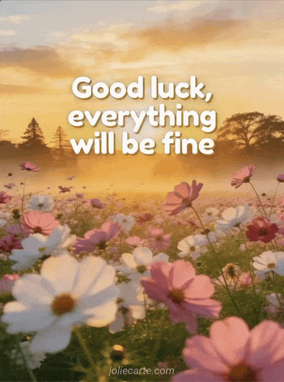 Send warm wishes of good luck to someone facing surgery or a challenge. This photorealistic card with a field of pink cosmos under a golden sunset conveys your hope and encouragement. Discover also a reassuring get well card, a strength for surgery card or a stay strong card.