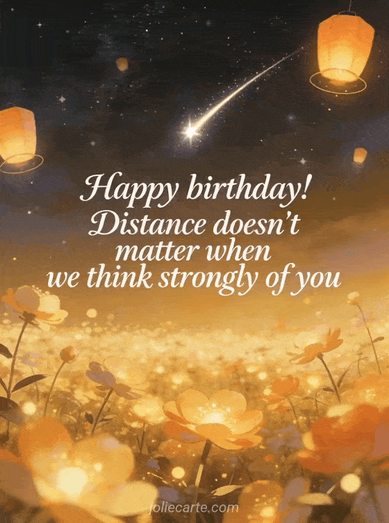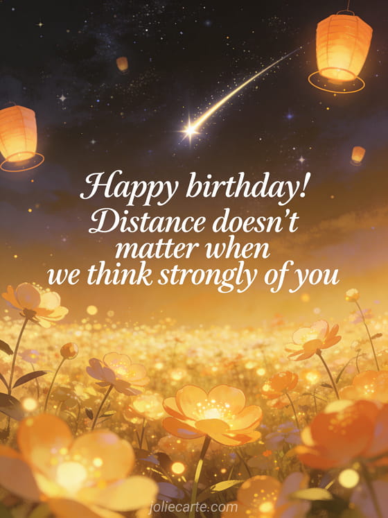 Happy birthday! Distance doesn't matter when we think strongly of you A poetic and caring birthday message to stay close from afar.